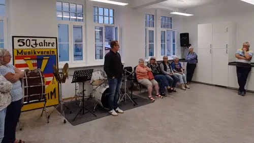Weiter ging es zur „Alten Schule“, die mit Mitteln des Amtes für Ländliche Entwicklung saniert wurde. Geschäftsleiter Josef Zeißner informierte über Daten und Fakten, auch konnten die Proberäume des Musikvereines und des Gesangsvereines besichtigt werden. Als Überraschung gab der Gesangsverein Liederkranz mehrere Lieder zum Besten, die Anwesenden stimmten mit ein.