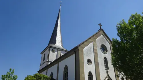 Altbürgermeister Reinhold Stahl stellte den Innenraum der Kirche vor, mit Schutzpatron, Heiligenfiguren und Evangelisten. Eine Besonderheit ist das zweigeteilte Deckengemälde.